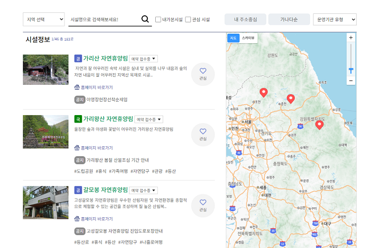 ★ 어느 지역의 자연휴양림을 선택하실지 모르겠다면 전국의 자연휴양림을 조회해 보셔서 원하는 국립자연휴양림을 선택하시면 됩니다