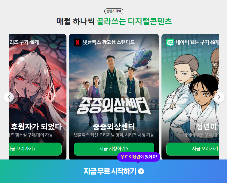 ★ 넷플릭스를 1달간 무료로 시청할 수 있는 방법은 바로 네이버멤버십 플러스를 1달간 체험하면 OTT를 무료로 시청할 수 있습니다.
