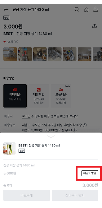 이 방법으로 재입고 알림 서비스를 받으실 수 있습니다.