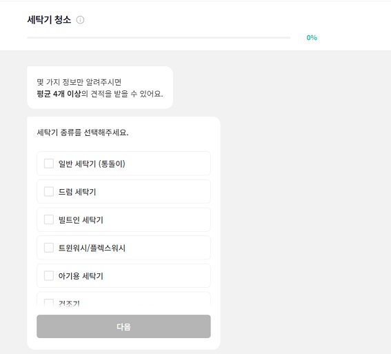 → 1분이면 세탁기 무료 견적을 받을 수 있기에 간편하고 내 지역의 전문가를 손쉽게 찾을 수 있는 플랫폼입니다.