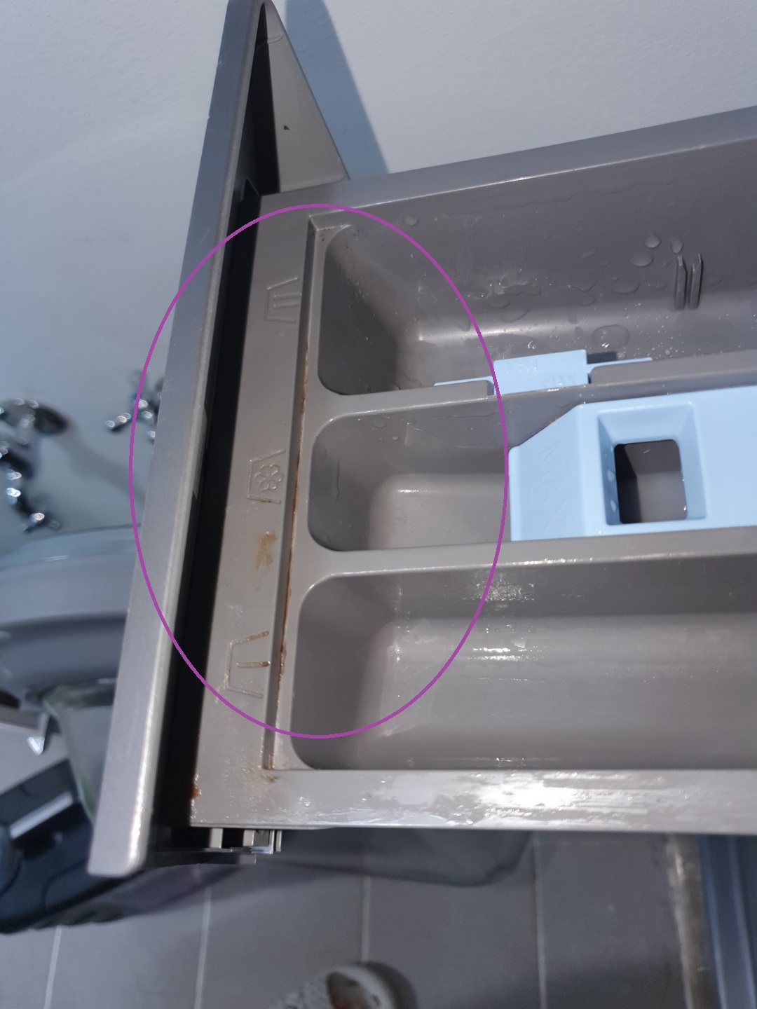 세탁기는 습기가 많이 차고 물때가 잘 붙기 때문에 주기적으로 세제통과 세탁기를 내부를 청소해셔야 합니다. 세제통을 청소하지 않을 경우 세제와 섬유유연제에 곰팡이에 섞여 그대로 빨래하시게 됩니다. 세제통 주위와 세제통 안을 세척솔이나 물티슈로 닦아냅니다.