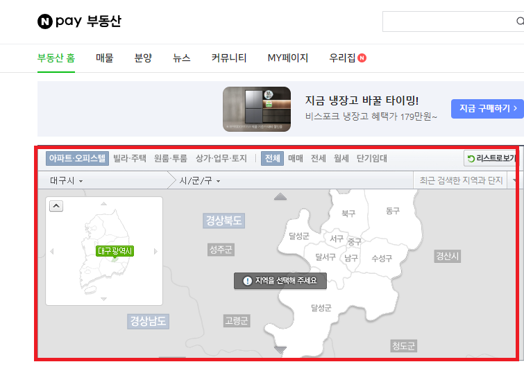 → 최근에 네이버 부동산과 네이버 페이가 합쳐져서 네이버페이 부동산으로 변경되었지만 지역을 선택하면 주변 지역의 매물 시세까지 알 수 있고 실거래가와 단지정보, 학군정보까지 자세하게 확인할 수 있습니다