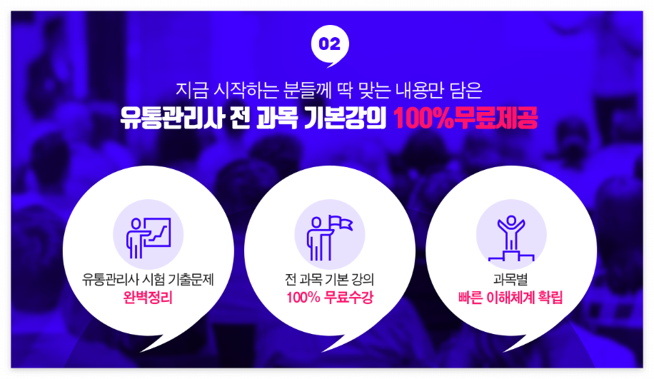여러 유통관리사 강의가 있지만 그중 에듀윌의 유통관리사 자격증(https://event.eduwill.net/)에서는 5일 동안 무료로 이론을 보실 수 있고 이 강의가 나에게 맞는지 확인하시고 맞는다면 신청하셔서 듣는 것이 좋습니다.