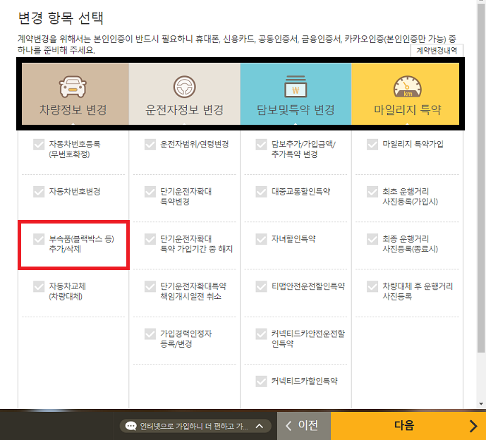 1-3. 블랙박스 외 다른 특약 추가하는 방법