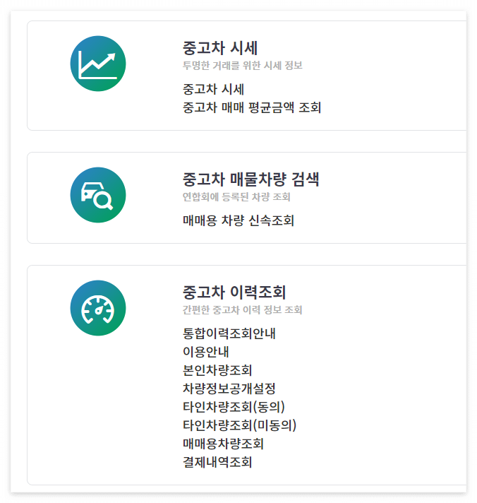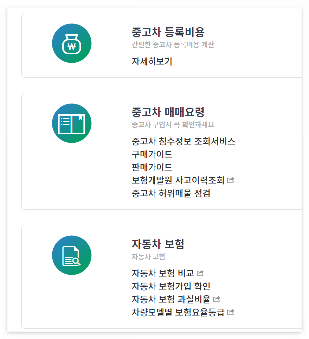 또한 중고차 침수정보 조회서비스와 중고차 통합이력조회를 하실 수 있으니 구입하려는 차량을 꼭 조회해 보셔서 현명한 구매하시길 바라겠습니다.