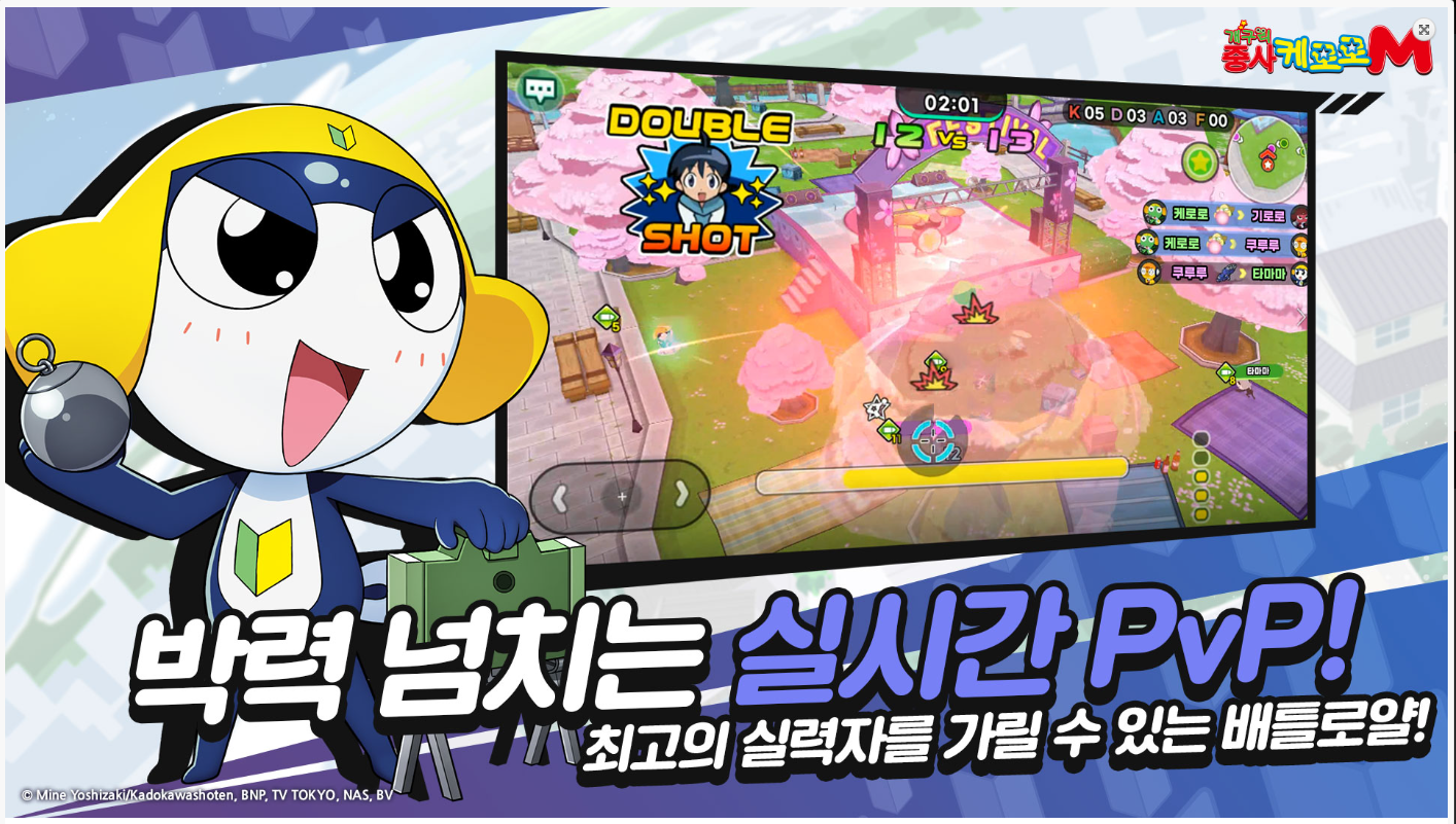 ▶ 케로로M 게임은 개구리 중사 케로로를 캐릭터로 하는 슈팅 액션 게임입니다.