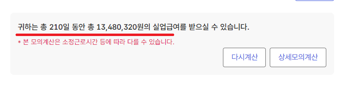 👉 위의 항목을 기입하고 계산을 누르면 여러분이 얼마의 기간 동안 얼마의 실업급여를 받을 수 있는지 간편 계산됩니다