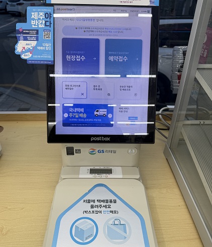 그럼 GS 편의점을 방문하기 전 사전예약을 하였고 편의점에 방문하여 포스트박스로 택배 발송내역을 입력 후 운송장을 출력하면 됩니다
