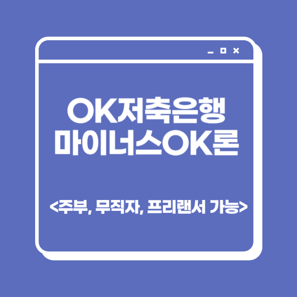 위와 같이 직장인이나 개인사업자가 아니더라도 주부, 프리랜서, 무직자의 경우에도 돈이 필요할 경우 이용하실 수 있는 OK저축은행의 마이너스 OK론 대출상품에 대하여 알아보았습니다.