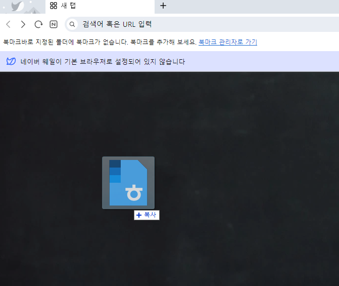 2️⃣ 웨일브라우저로 인터넷에 접속하여 웨일브라우저 빈 공간에 hwp 파일을 끌어다 놓습니다