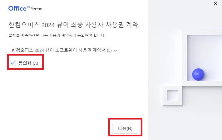 3️⃣ HOfiice2024_Viewer 파일을 더블 클릭하여 hwp 뷰어 프로그램을 설치합니다